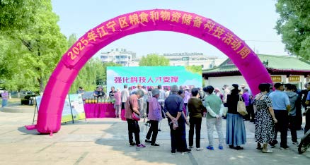 江宁区于5月30日在江宁区双拥广场举办粮食科普宣传活动,投入经费2万元,制作了宣传展板,向现场活动人员发放宣传册400本,宣传关于节粮减损、应急储备等相关知识,现场参与人数达到270余人。