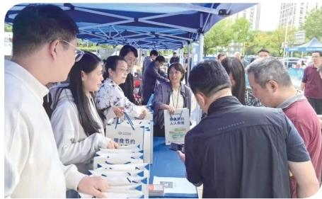 同时,南京市部分骨干粮食生产经营企业, 携手对口帮扶的陕西省商洛市在宁农副产品销 售企业,以及南京都市圈的淮安市和扬州市部分 粮食企业,共同举办粮食和特色农产品展销宣传 活动。活动现场,工作人员悬挂条幅、张贴海报、 发放宣传资料,还现场解读粮食安全政策,普及国家粮食安全相关内容,以及粮食节约、科学储粮、粮油营养健康、粮食品质鉴别等知识。同时倡导大家用实际行动厉行节约,杜绝“舌尖上的浪费”,共护“国之大者”,树立文明理性消费观,提升粮食安全意识。现场累计发放宣传册及宣传品1000余份,吸引约2000人参与。